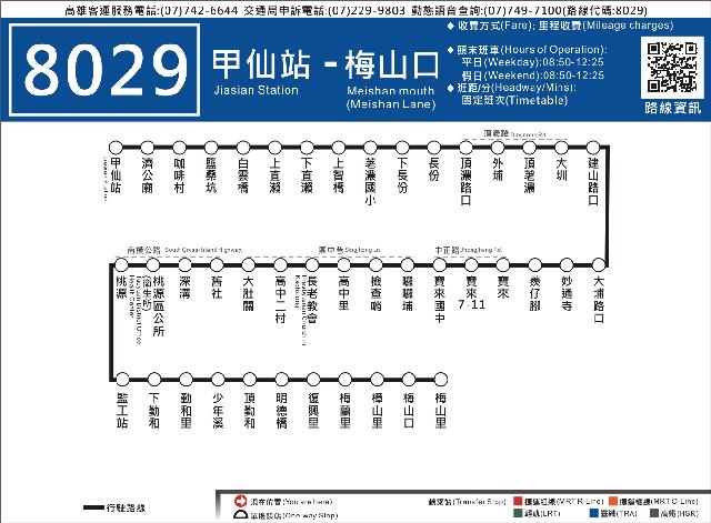 「高雄客運」『【8029】甲山-梅山口』路線,每天來回2個班次,